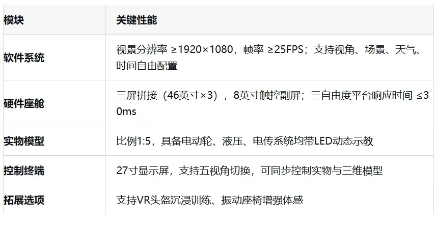 旨在通过半实物仿真、三维建模、人工智能与实时交互等先进技术,构建一个沉浸式、高保真的训练环境,支持驾驶操作、结构原理